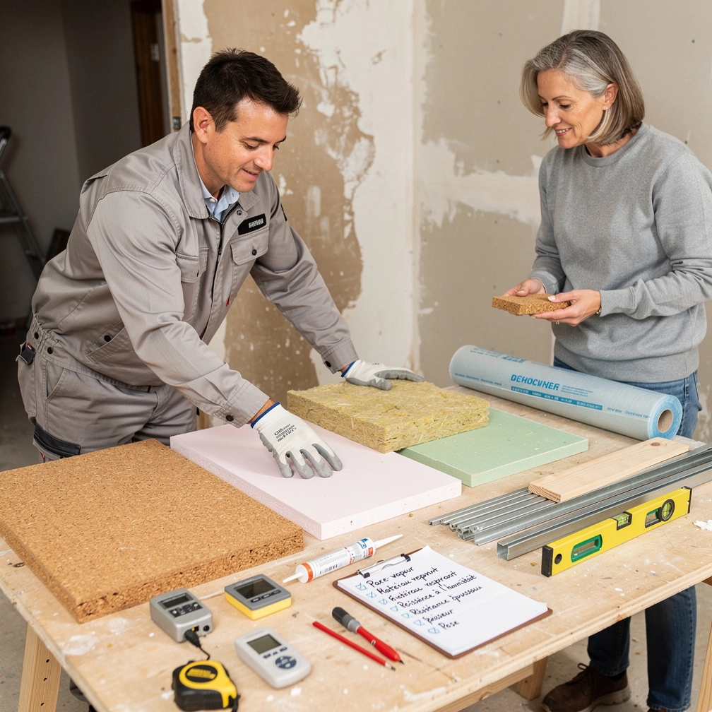 L’isolation par l’intérieur est souvent plus facile et moins coûteuse à mettre en œuvre. Elle consiste à installer un isolant entre le mur et le revêtement intérieur (plaques de plâtre). Cependant, elle réduit légèrement la surface habitable et peut présenter des inconvénients si la ventilation n’est pas optimisée. Plusieurs isolants sont adaptés :
